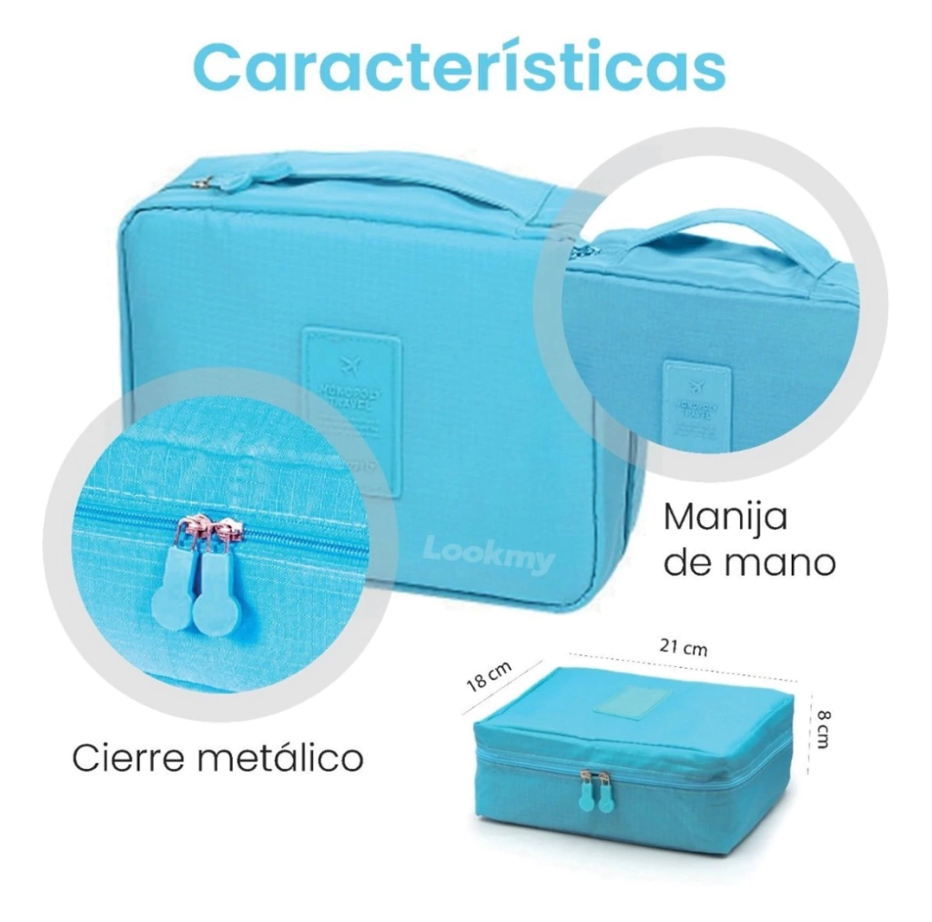 De material super blando y gran capacidad. Tiene su compartimento del medio con velcro y compartimento para cosmeticos. Posee dos cierres exteriores